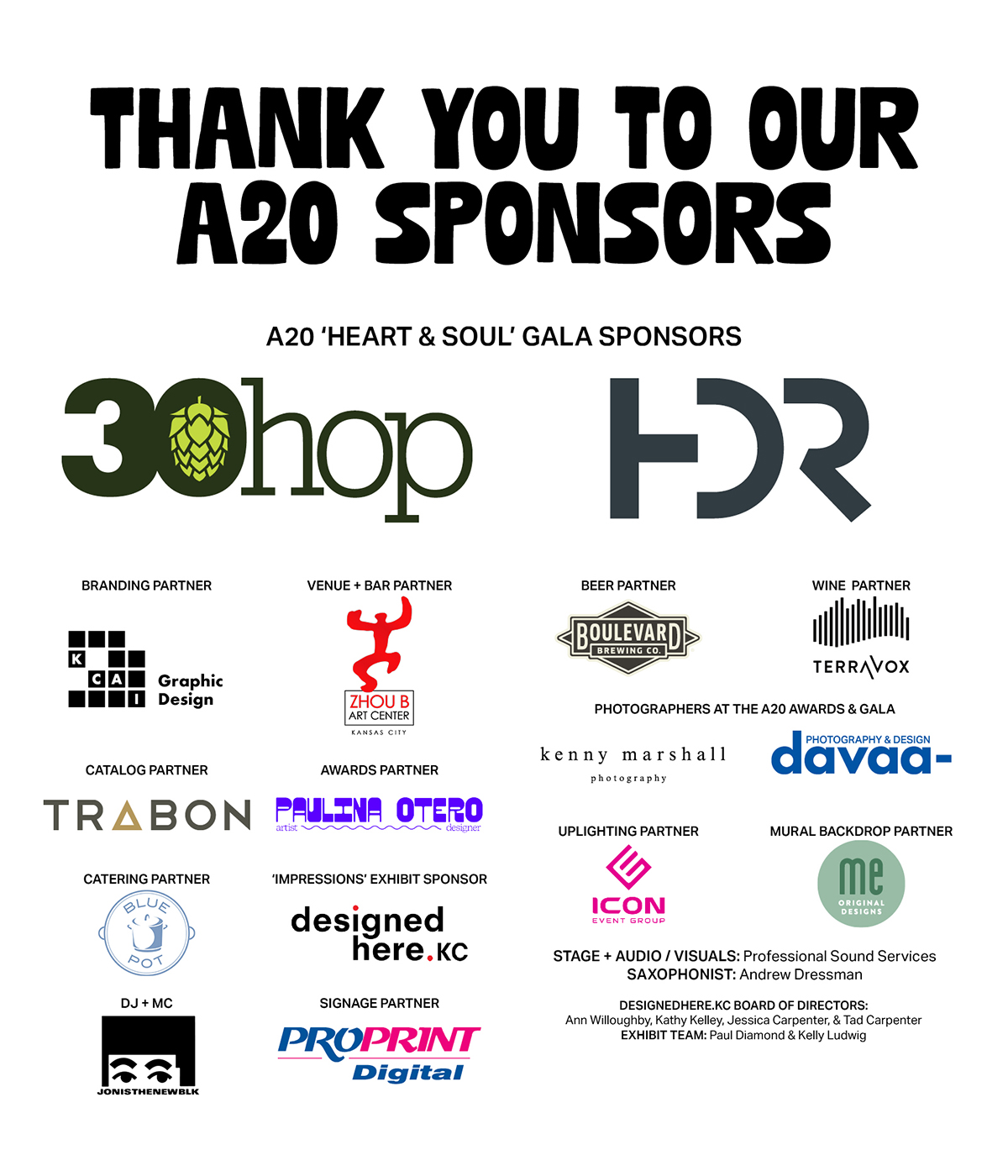 Get Tickets!The Kansas City creative community is rich with talent, vision, and heart—and this year, we’re bringing it all together under one roof. Join us at the Zhou B. Art Center for AIGA KC’s 20th Annual A-Awards & Gala as we honor the designers and creatives who continue to shape our city’s visual culture.