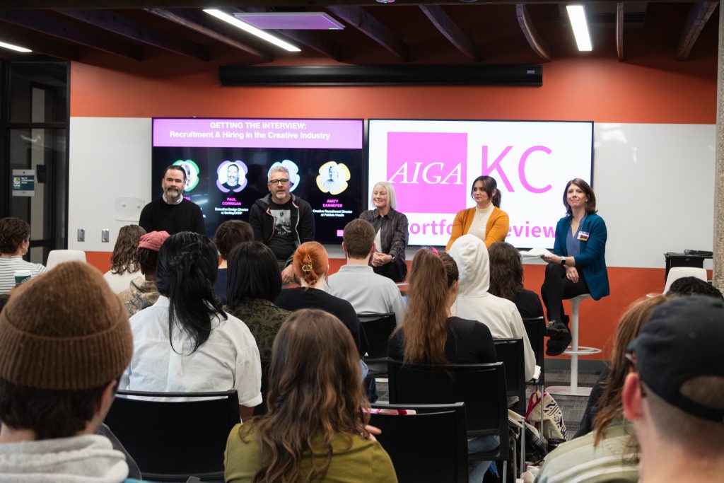The first workshop, “Getting the Interview” was hosted by Jen Beck, AIGA KC Director of Education and included an experienced panel of recruiters and directors from local companies and agencies. The panelists provided their insight on what makes a portfolio stand out and potential red flags on a portfolio or resume.