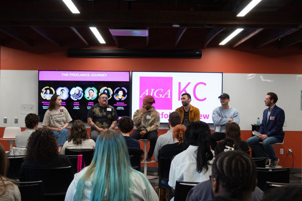 The second workshop, “The Freelance Journey” was hosted by Jason Gramke, AIGA KC Chair of Education and included an expert panel of freelancers. The variety of freelancing experience and specializations made for a panoramic perspective. Panelists discussed why they chose to freelance, how they handle pricing and creative pushback from clients, and managing work-life balance.